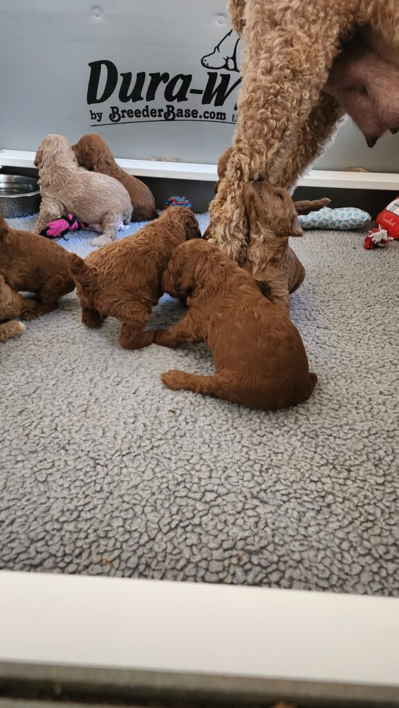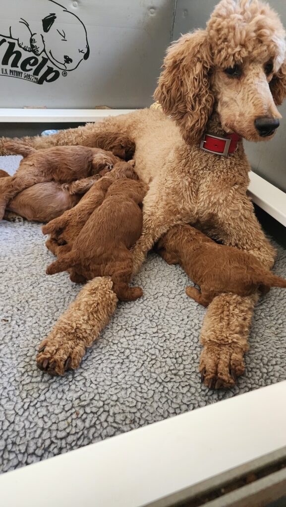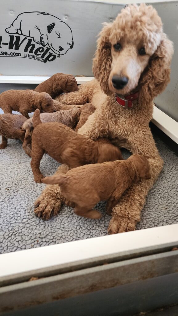 We are thrilled to announce the arrival of The Nifty Nine, a beautiful litter of Red Standard Poodle puppies born Monday, August 25, 2025!